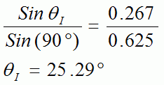 L-wave and S-wave refraction angles are calculated using Snell’s law. You also can use this law to determine the first critical angle for any combination of materials.