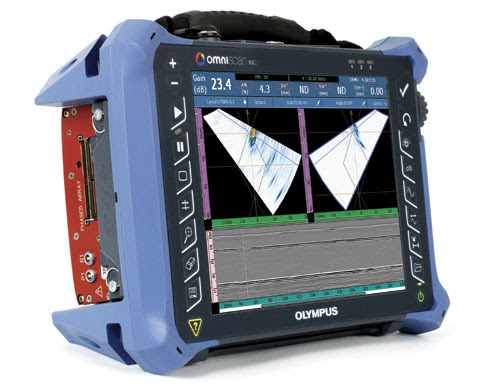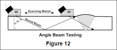 In angle beam inspections, the transducer and wedge combination (also referred to as a "probe") is moved back and forth towards the weld so that the sound beam passes through the full volume of the weld. As with straight beam inspections, reflectors aligned more or less perpendicular to the sound beam will send sound back to the transducer and are displayed on the screen.